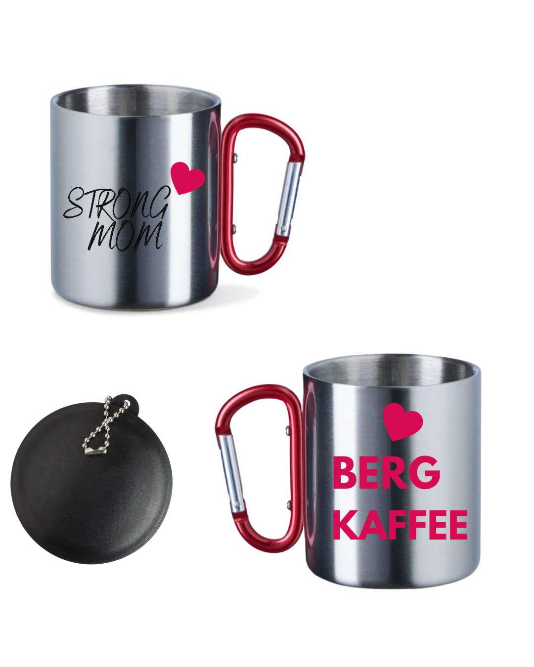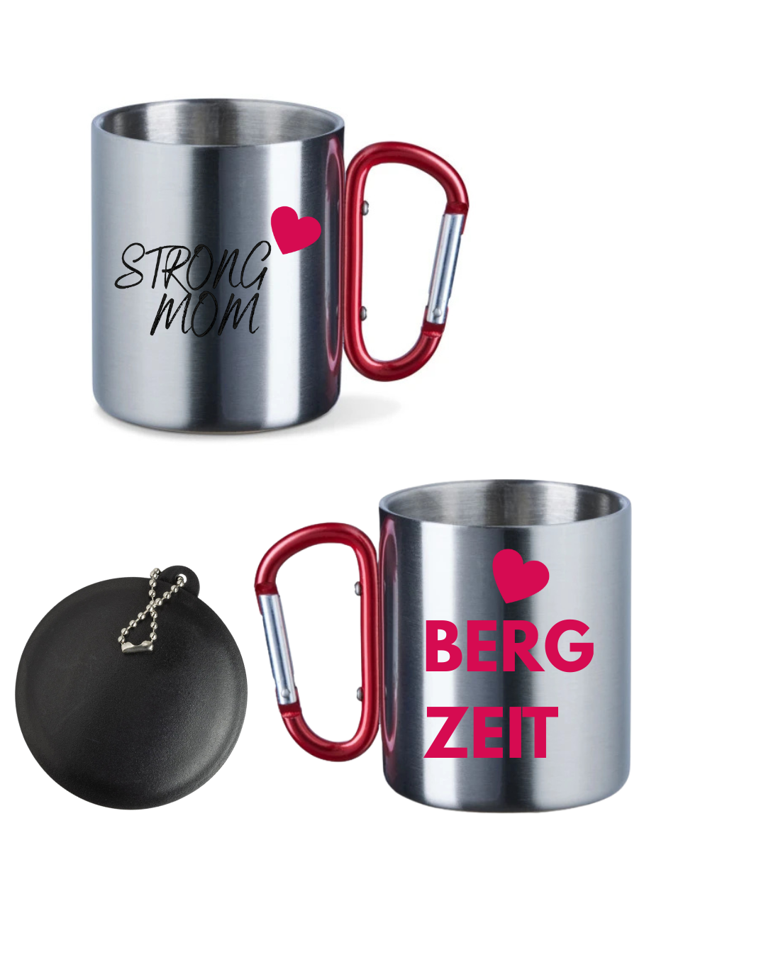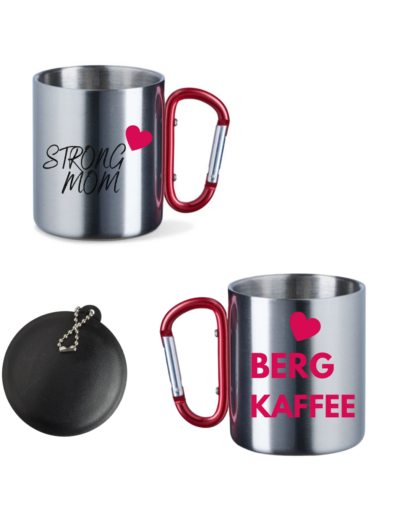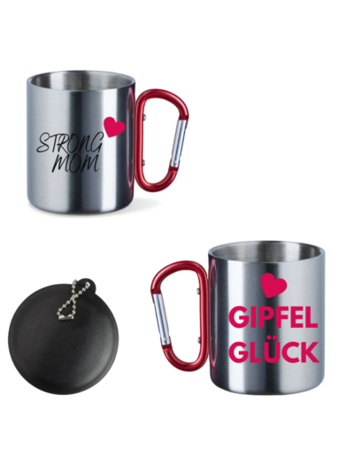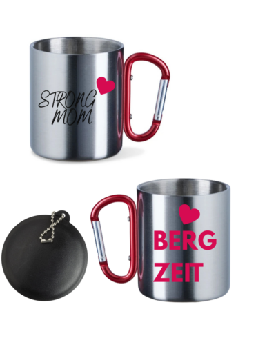 Edelstahltasse mit Karabinerhenkel und Deckel