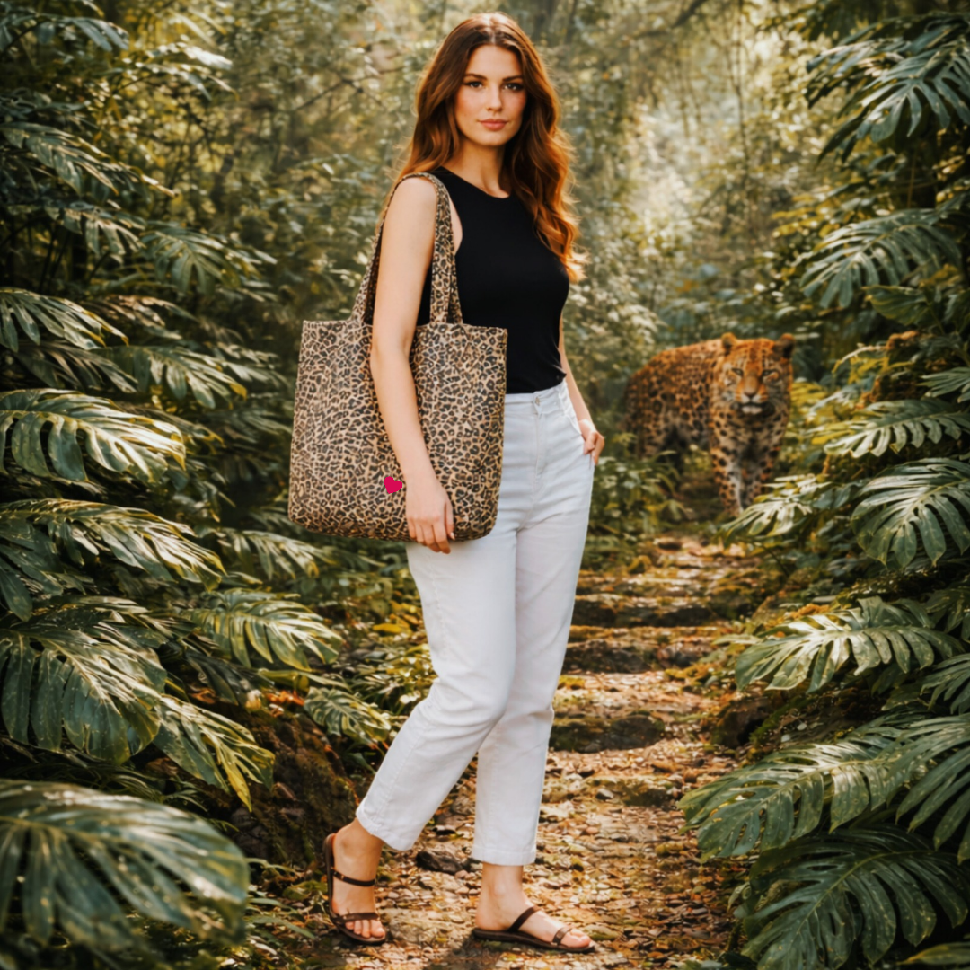 Die Leopard Print Canvas Oversized Tote Bag steht für genau diese Energie: