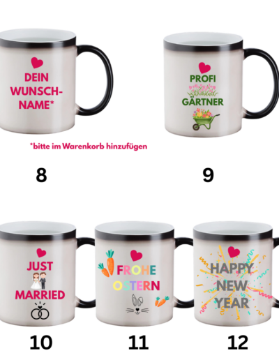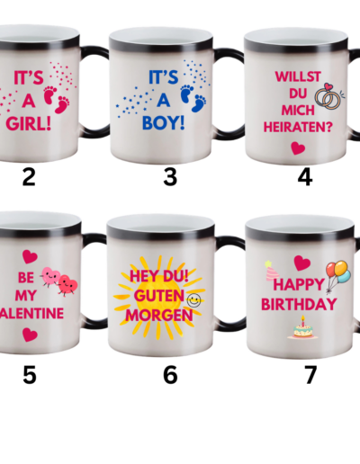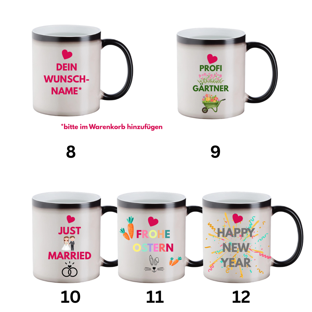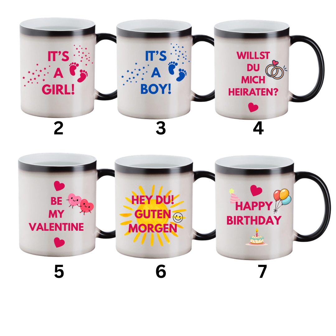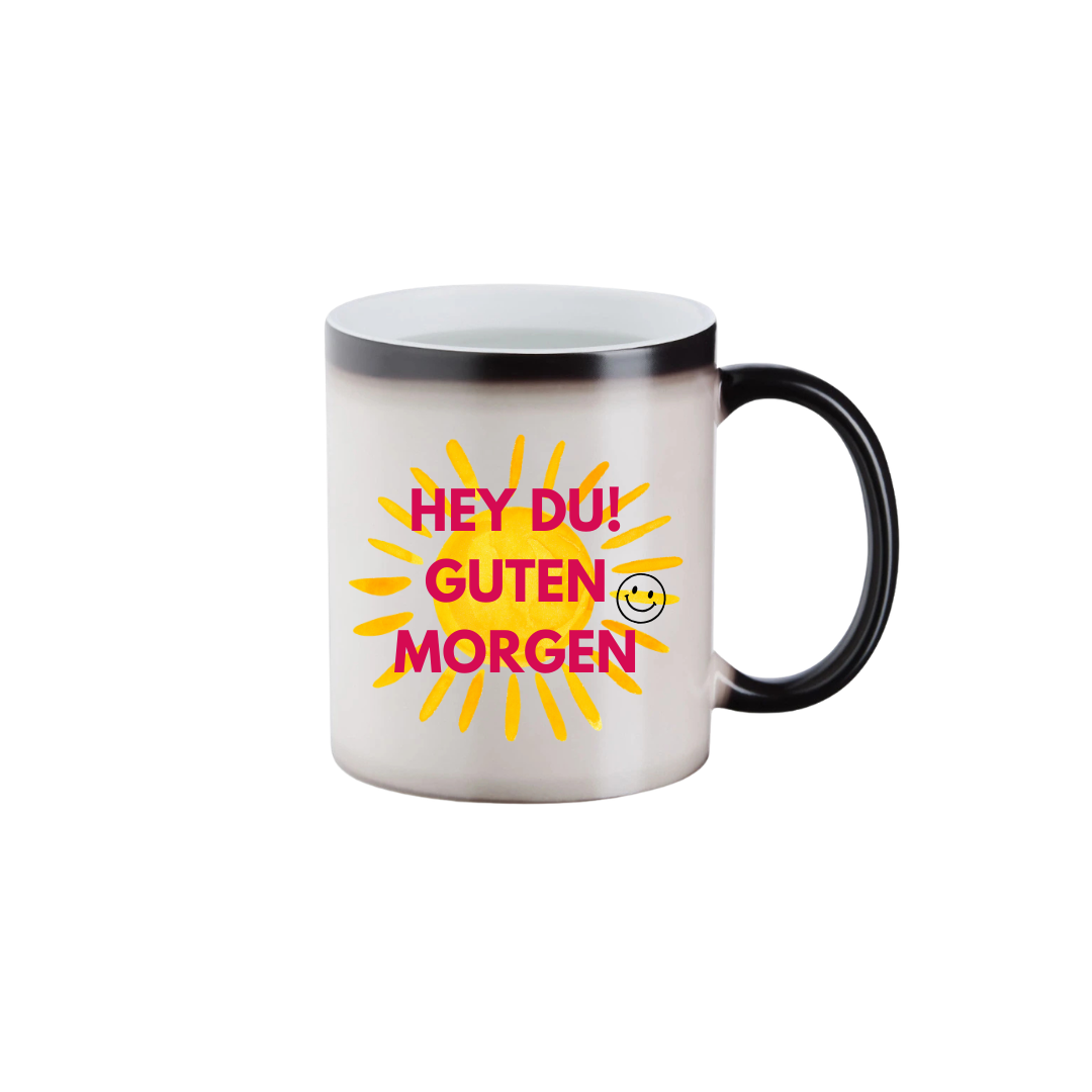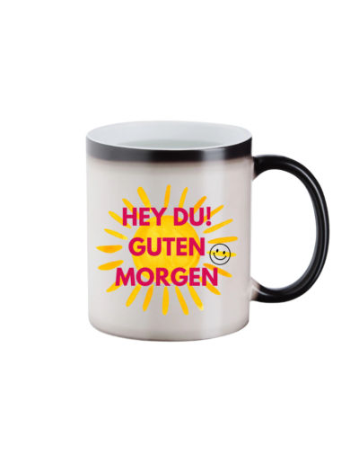 Die Keramiktasse mit Farbwechseleffekt verändert ihre Farbe durch das Befüllen mit heißer Flüssigkeit und lässt so ein aufgedrucktes Motiv zum Vorschein kommen – für deinen täglichen Vibe!